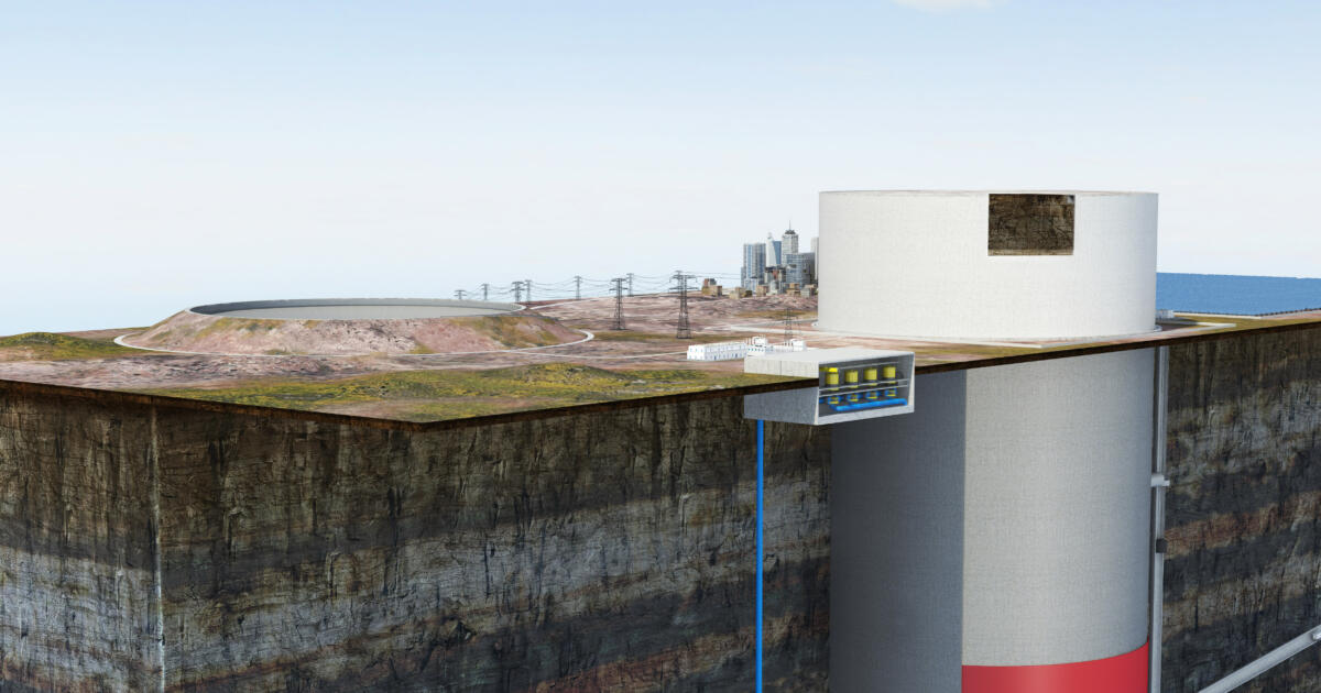 Gravitationskräfte sind auch das Geheimnis des Gravity Storage. Hier wird mit überschüssigem Strom eine mehrere Hundert Meter große Fels- oder Betonmasse hydraulisch hochgepumpt. Bei Strombedarf wird dieser Kolben dann abgelassen. Er drückt das Wasser durch Turbinen, die wie bei einem Wasserkraftwerk Generatoren antreiben. Das Wasser fließt zurück in ein Reservoir. Das System hat einen Wirkungsgrad von mindestens 80 Prozent – was es ökonomisch besonders attraktiv werden lässt. Die Speicherkapazität ist immens und würde mehrere Gigawattstunden betragen und damit die Werte von Pumpspeicherkraftwerken erreichen oder übertreffen. Das große Potenzial dieser Technologie stellt auch eine Studie des Imperial College of London heraus. Darin heißt es: „Gravity-Storage-Systeme sind die kostengünstigste Stromspeichertechnologie für Speicherkapazitäten von mehr als einer Gigawattstunde.“ Doch bevor ein solches System einsatzbereit ist, muss eine lange To-do-Liste abgearbeitet werden. Denn genauso immens wie die Kapazität sind auch die technischen Herausforderungen – wie die Drücke, die auf Turbinen, Leitungen und Dichtungen einwirken.